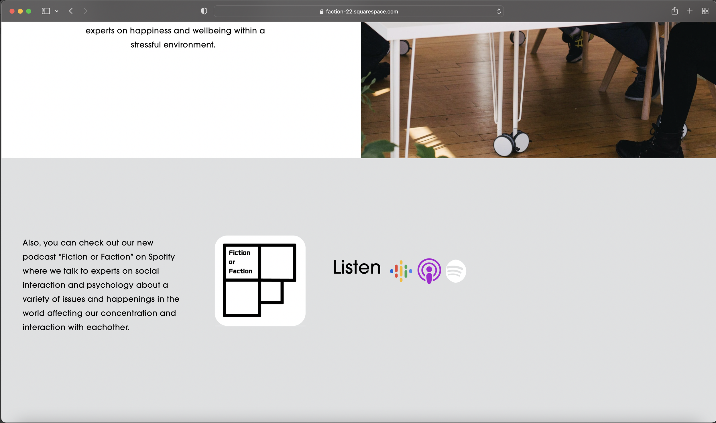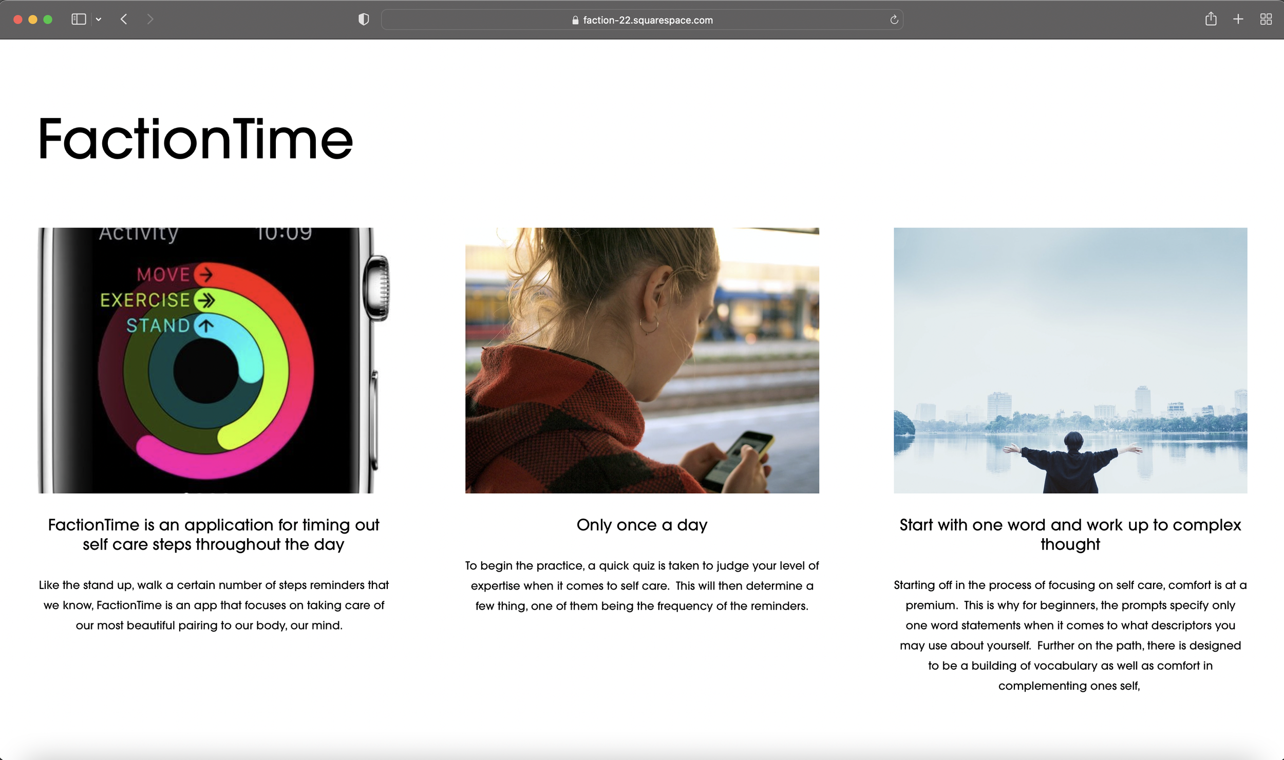 In the end, Faction is much more of a concept than an actual product. An application was made, along with a website, with the description of Faction being a application that allows the user to practice and learn daily, improvements to there speech patterns and delivery in group settings or peer to peer conversations.