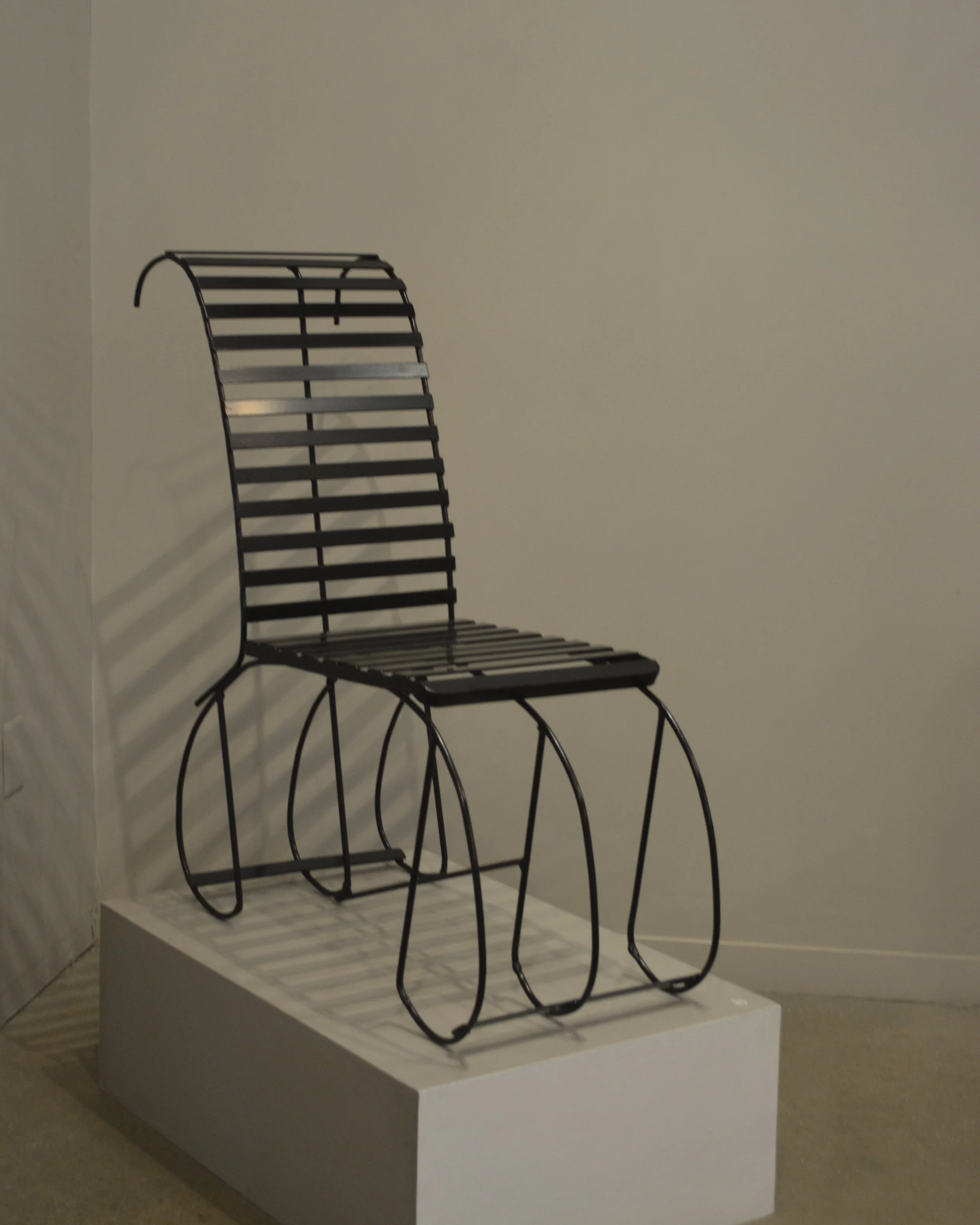 This project was designed for us to explore what we did with our plywood chairs, in metal. This would force us to deal with the vastly different properties of metal and design with that in mind. I kept my thesis of design from my plywood chair, revealing how the chair was constructed and using it as the focal point of design.